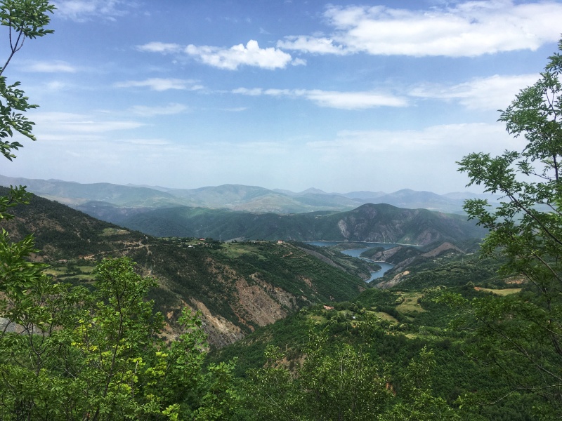 Naším cílem byla nádrž Bovilles kus severovýchodně za Tiranou. Drncavou šotolinu najednou vystřídal parádní asfalt a serpentýna za serpentýnou. Od hráze jsme se opět vrátili na šotolinu a stoupali dalších minimálně devět zatáček na naši soukromou kempovací terasu s výhledy za milion!!
