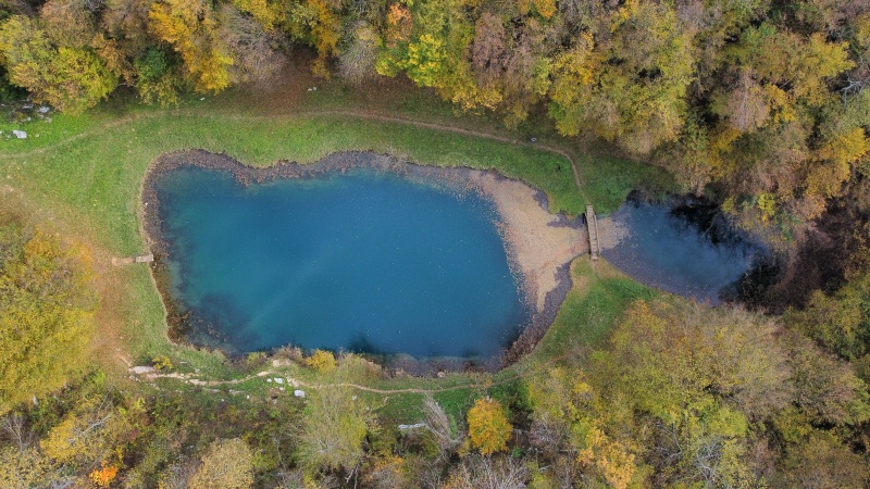 Kýčovitě modré dvojjezírko je okupováno skupinkou na tisíc způsobů pózující chorvatské mládeže, jež se nám úplně na ty NAŠE instagramy nehodí, ale co už. Obejdeme ho kolem dokola, hledáme otisk podkovy koně svatého Jiřího, který zde vysvobodil kdysi nebohou pannu ze spárů draka. Stopu nenacházíme.